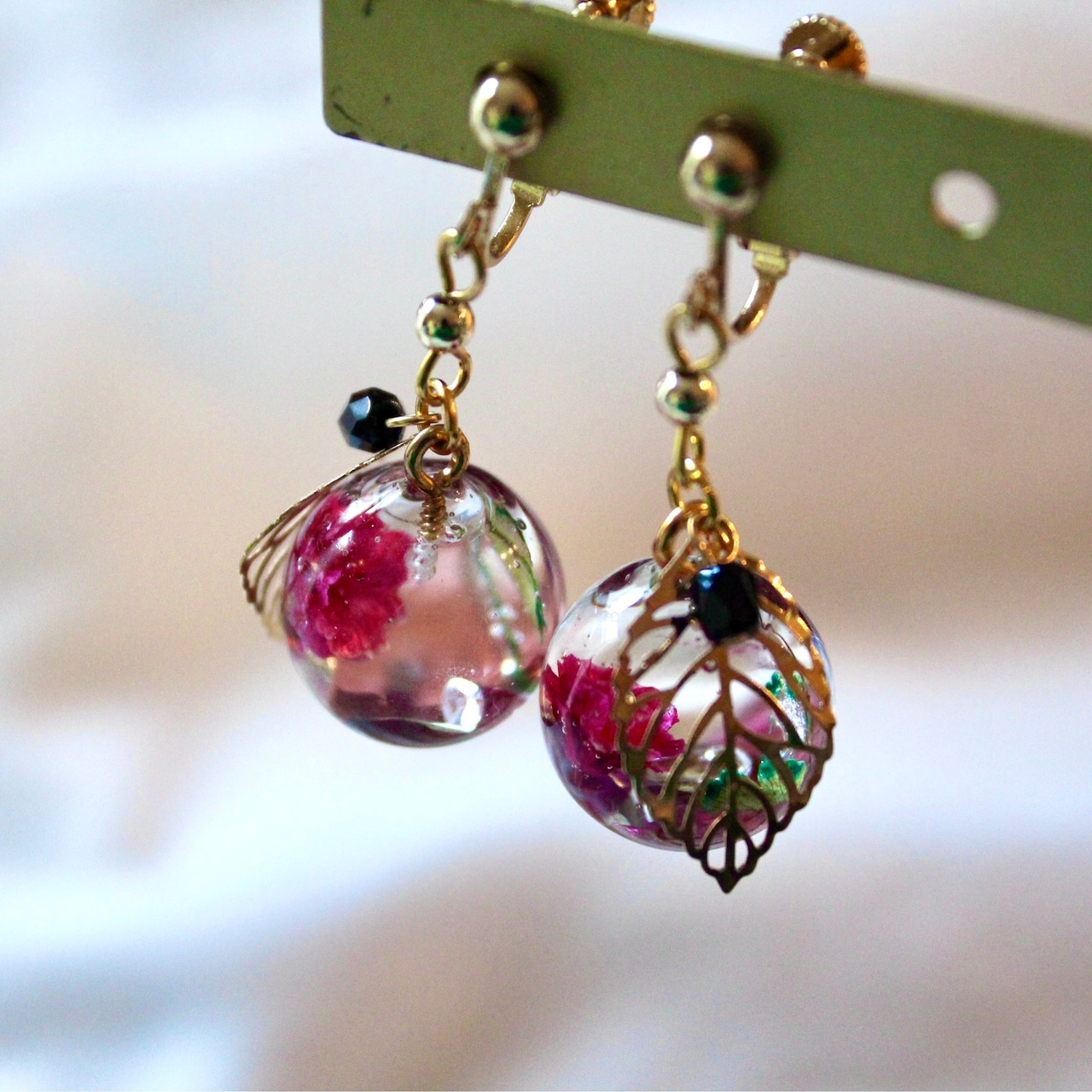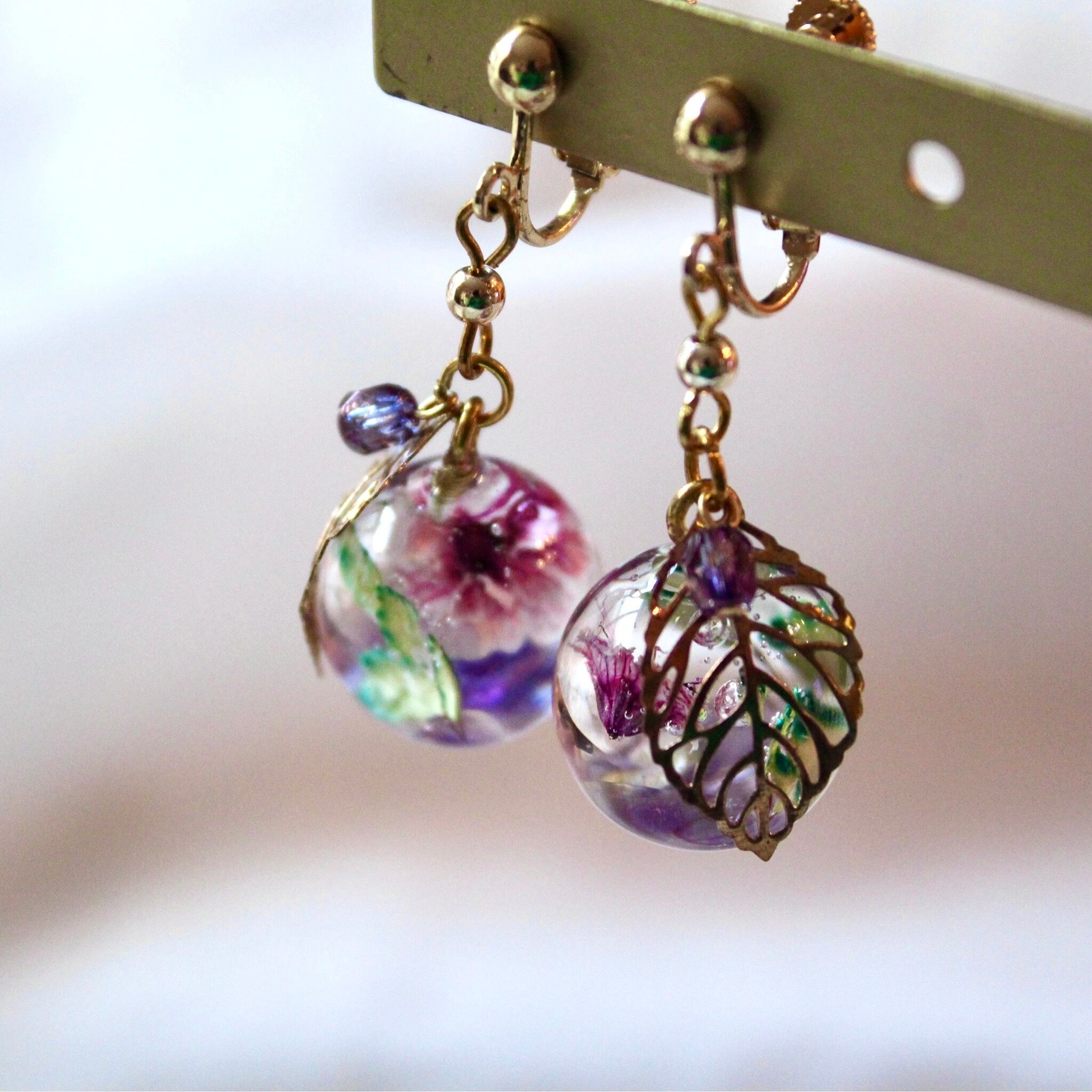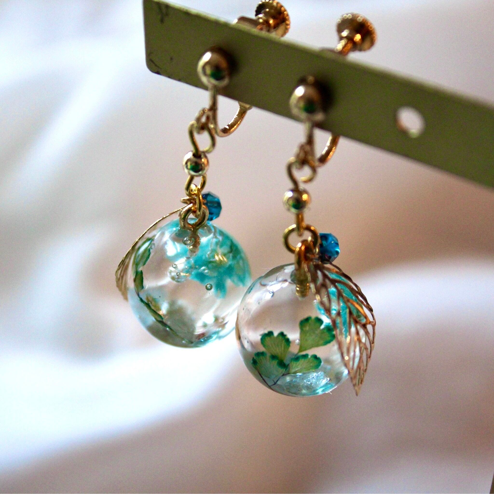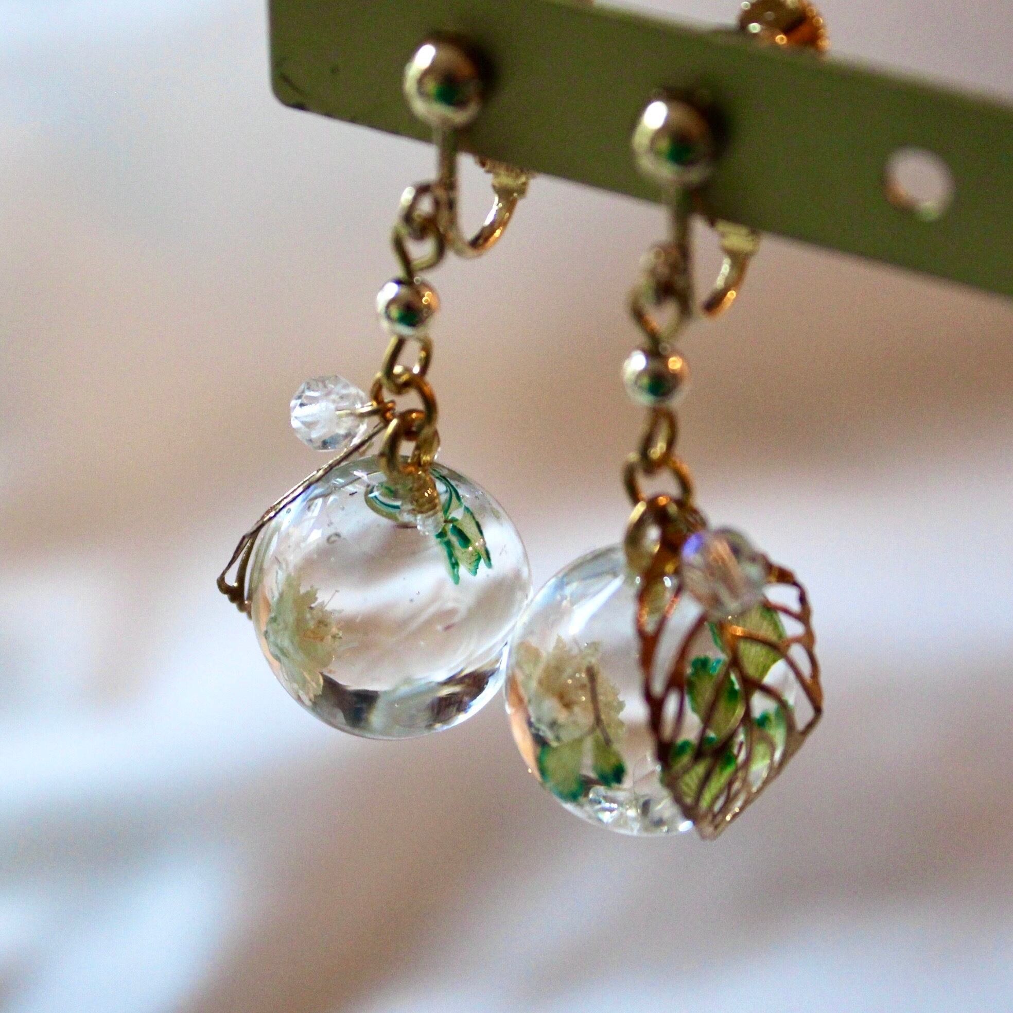 レジン ピアス イヤリング 樹脂ピアス 樹脂イヤリング ノンホールピアス 氷 ガラス 果物 実 天然石 透明 リーフ ビーズ