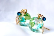 透き通るの樹脂に天然石のさざれ石とかすみ草を閉じ込め、果実を表現しました。